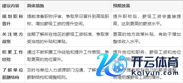 尽早贪图职称和职务晋升:薪级工资与职称和职务密切关连,因此尽早贪图我方的职称晋升和职务养息,将对薪级工资的普及起到关节作用。举例,普及职称至高档职称,或者晋升到惩处岗亭,王人会径直带来薪级工资的普及。关注地点战略变化:不同地区的薪级工资范例有所不同,有些地点还会有突出补贴和津贴,因此要实时关注地区战略的变化,争取取得更多的补贴。积存使命素质和浮现:30年的工龄是一个相当珍藏的资产,但淌若能通过积存更多的使命素质和普及使命浮现,时常能够为我方争取到更高的薪级工资。了解单元的薪酬结构:各个单元的薪酬结构可能不同,因此了解我地契元的薪酬范例以及薪级工资的养息礼貌,是匡助我方普及薪酬的一个遑急法子。