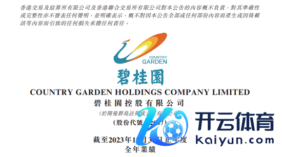炒股就看金麒麟分析师研报,巨擘,专科开云kaiyun体育,实时,全面,助您挖掘后劲主题契机! 延期近1年,碧桂园(02007.HK)2023年年报终于发布。 2025年1月14日晚间,碧桂园公布2023全年及2024上半年财务陈述,公司2023年已矣总收入约4010亿元(东谈主民币,下同),税前赔本约1673亿元;2024上半年已矣总收入约1021亿元,税前赔本约108亿元。拆伙2024年6月30日,碧桂园净财富仍保合手为正,约为741亿元。碧桂园股票也将于近日复原本往。 2023年计提逾千亿