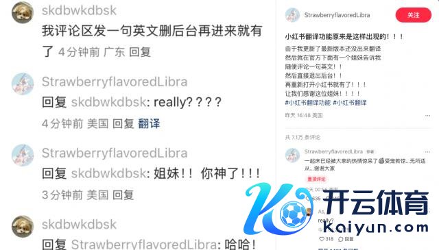 - 照旧没反馈的话,有网友建议了「杀后台大法」:磋商区率性发一句英文,然后退出后台,再再行大开小红书,就会出现翻译功能