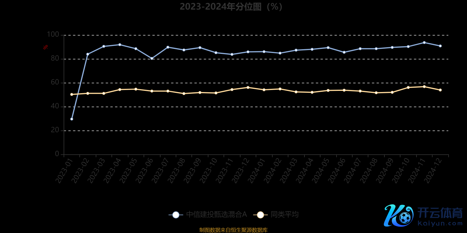 通过所选区间该基金净值增长率分位图,不错不雅察该基金与同类基金事迹相比情况。图为坐标原点到区间内某时点的净值增长率在同类基金中的分位数。