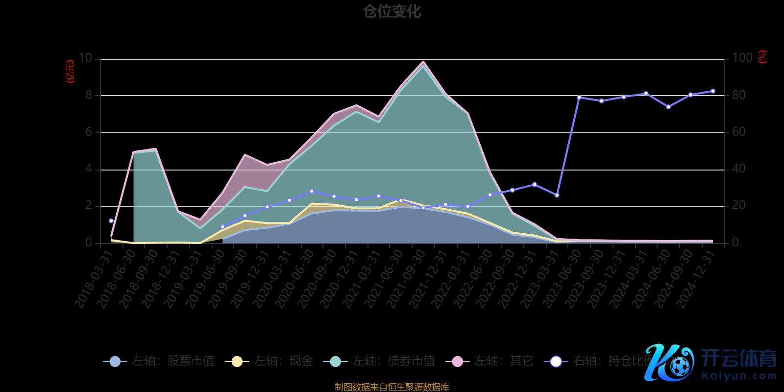 据如期文书数据统计,近三年平均股票仓位为57.24%,同类平均为79.9%。2024年末基金达到82.53%的最高仓位,2019年上半年末最低,为8.87%。
