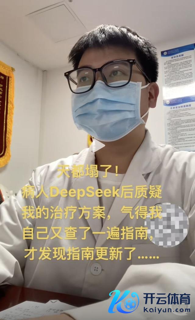 2月22日,广东又名医学博主上网发帖称,我方为病东谈主开出调养决策,对方查询DeepSeek后称有问题,我方“气得又查了一遍医学指南”,终局发现医学指南更新了,自嘲嗅觉“天塌了”。DeepSeek的确这样狠恶?它给出的调养决策是否靠谱?DeepSeek的确会取代医师吗?23日,上游新闻记者就此进行了拜谒,有资深医师示意,东谈主工智能在某些医疗畛域着实弘扬出色,但现在看来并不可齐备取代医师的专科判断和临床训诫。 博主“落落寡合”发视频称,被患者用DeepSeek“质疑”。视频截图 1 医师:De