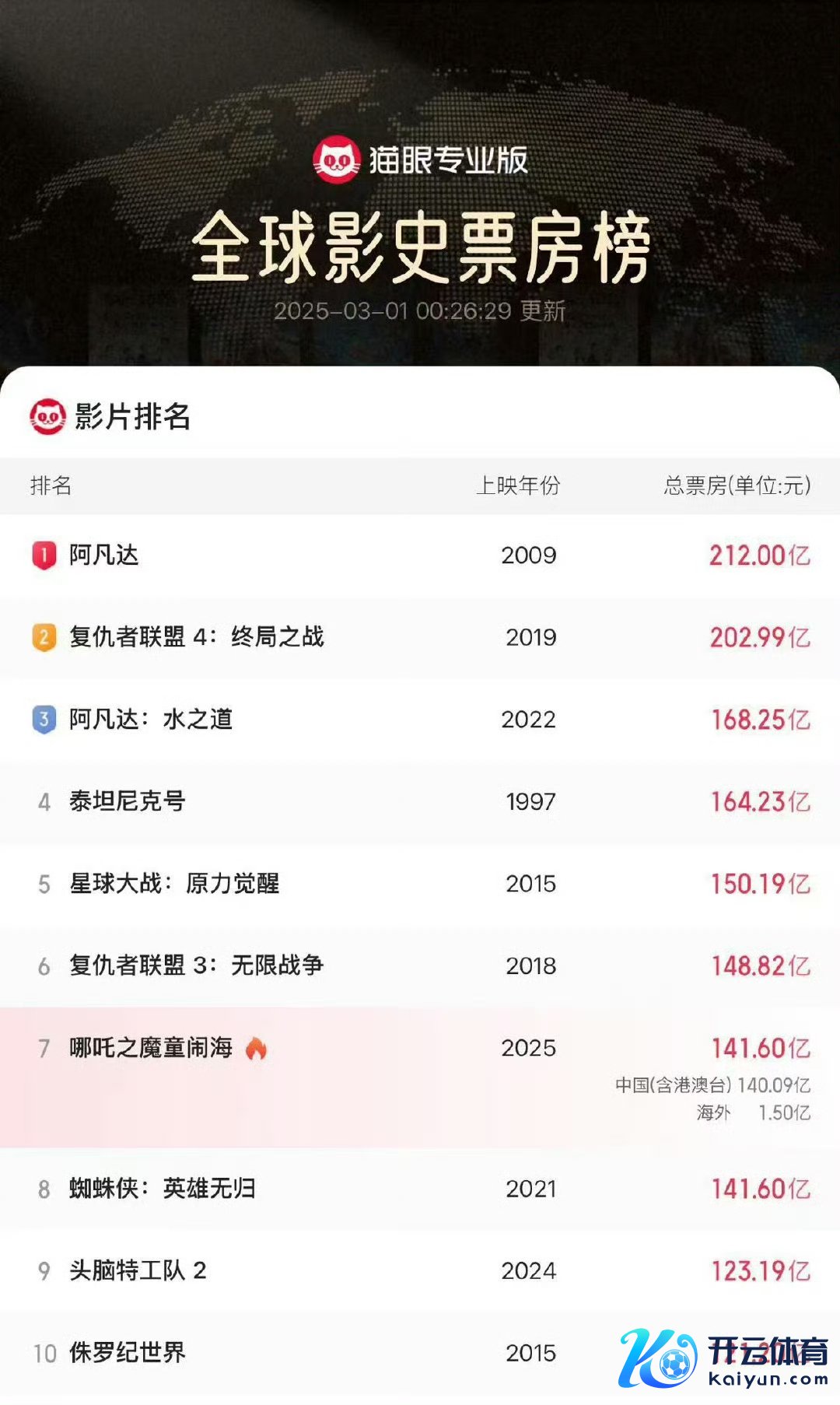 《哪吒之魔童闹海》各人票房(含预售)干预各人影史票房榜前7名《哪吒之魔童闹海》各人票房(含预售)干预各人影史票房榜前7名